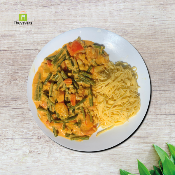 Paprika | Haricots Verts | Bloemkool | Kokosmelk | Noedels | Verse gele curry pasta van ThuysVers
