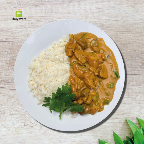 Kippendij | Bloemkoolrijst | Prei | Bleekselderij | Champignon | kerriesausje